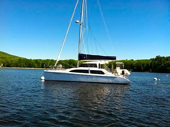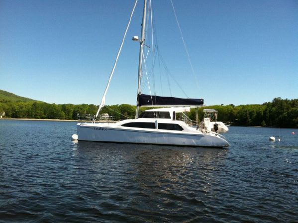 Dimensions Hull Type: Catamaran Twin Mini Keels Rigging Type: Fractional Sloop LOA: 35' 6" / 10.82 m LWL: 34' 2" / 10.41 m Beam: 19' 5" / 5.92 m Underwing Clearance: 2' 5" / 0.75 m Upwind Sail Area: 661.00 ft2 / 61.41 m2 Draft (max): 3' 3" / 0.99 m Displacement: 10,500 lb / 4,762 kg