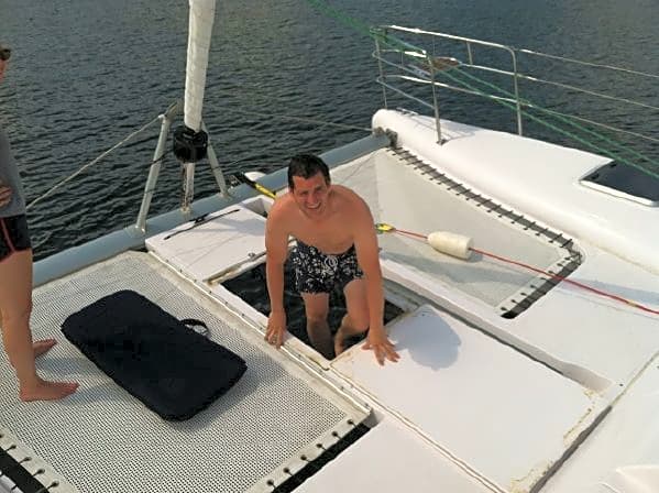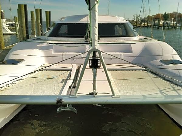 Deck 8:1 mainsheet system 3:1 traveler control system Hatches (6 in total) 2 x Forward Hatches Aluminium frame 500 x 500 2 x Mid cabin hatches 2 x Aft cabin hatches 4 x Mooring cleats 1 x Anchor cleat Forward catwalk swim ladder – hinges under hinged catwalk Cabin Ventilation: 2 x Dorade vents (PVC “ Seabird”) Mast base turning blocks Saddle at base of mast for halyard attachment 8 x Rope clutches Stanchions/Rails: High quality stanchions, bow rails and stern rails with 3 life-lines. 600mm high to meet Australian survey & CE requirements 4 x access gates with pelican hook releases 1 x manual bilge pump 2 x Bowseat pulpits with hinging teak slatted seats 2 x Padeyes mounted on each inboard bow for bowsprit retrofit