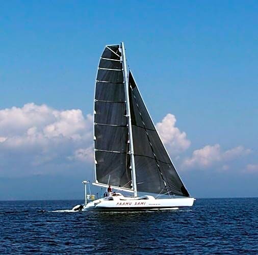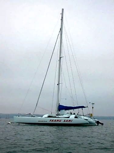 Construction Faamu Sami was commissioned in 1999 and launched in 2001. The hulls were built by Dick Vermuelen at Maine Cat in Bremen, ME. The beams were built by Jeff Kent at Composite Solutions in Hingham, MA. The mast was built by Ted Van Dusen at Composite Engineering in Concord, MA.