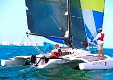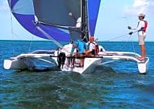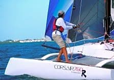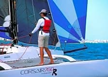 The Corsair 760 SPORT delivers supreme performance through the use of lightweight carbon technologies. However, she keeps the simple and effective sail plan, sail handling features, and folding mechanism that make the Corsair 760 so easy to manage. The carbon mast – standard on the Corsair 760 SPORT, reduces weight aloft and actually increasing her safety factor. So you can turn the speed dial to 10, but remain completely in control and comfortable in sailing such a performance machine.