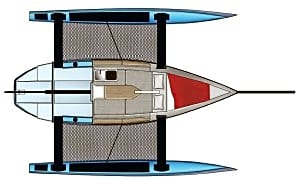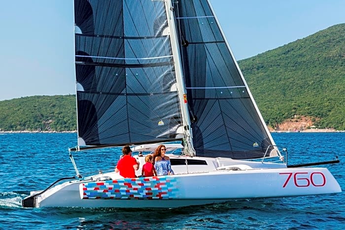 The 760 offers sailors more comfort, performance and safety than any other trimaran range in this size. This has been achieved by cleverly designing high volume, wave piercing floats. Offering additional buoyancy and significantly increasing the vessels righting moments and safety margins.