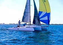 The 760 offers a comfortable cruising interior with compact galley and pop top. This compact cruising trimaran has been designed to comfortably sleep couples for weekend getaways and with the addition of an optional collapsible dining table will sleep up to 4 making the 760 a performance cruiser the whole family can enjoy.